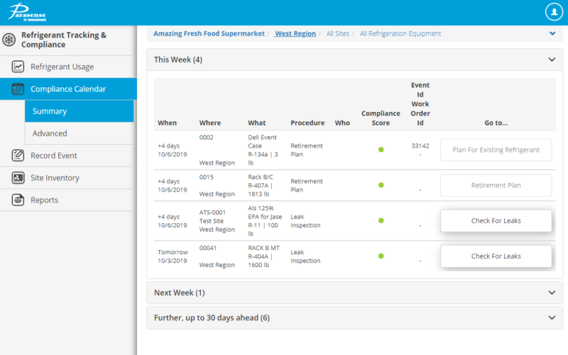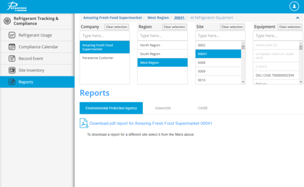Compliance reports can be generated annually or on demand for F-Gas, EPA 608, and CARB.