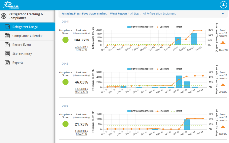 Gives an enterprise-wide view of the sites with the most and least leak events, helps to prioritize maintenance activity, and informs about refrigeration contractor performance.